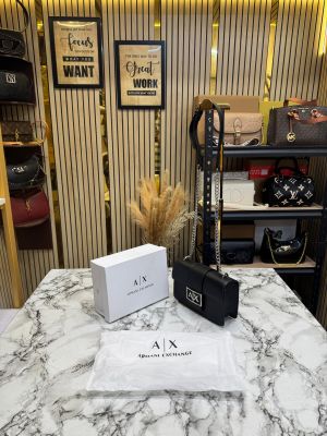 Arman_i Exchange AX Logo Chain Crossbody Bag With Box And Dust Bag (Black - 423)